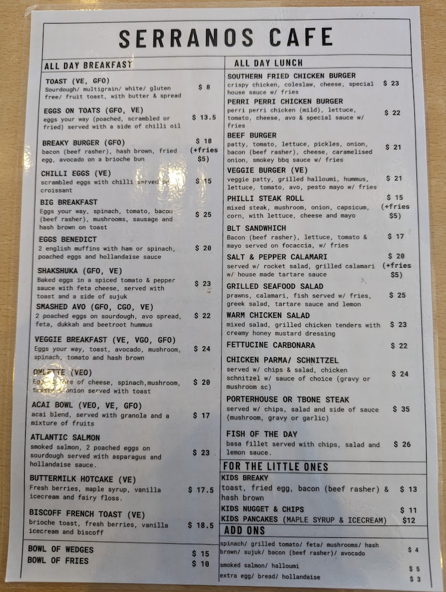 Serrano's Cafe Menu