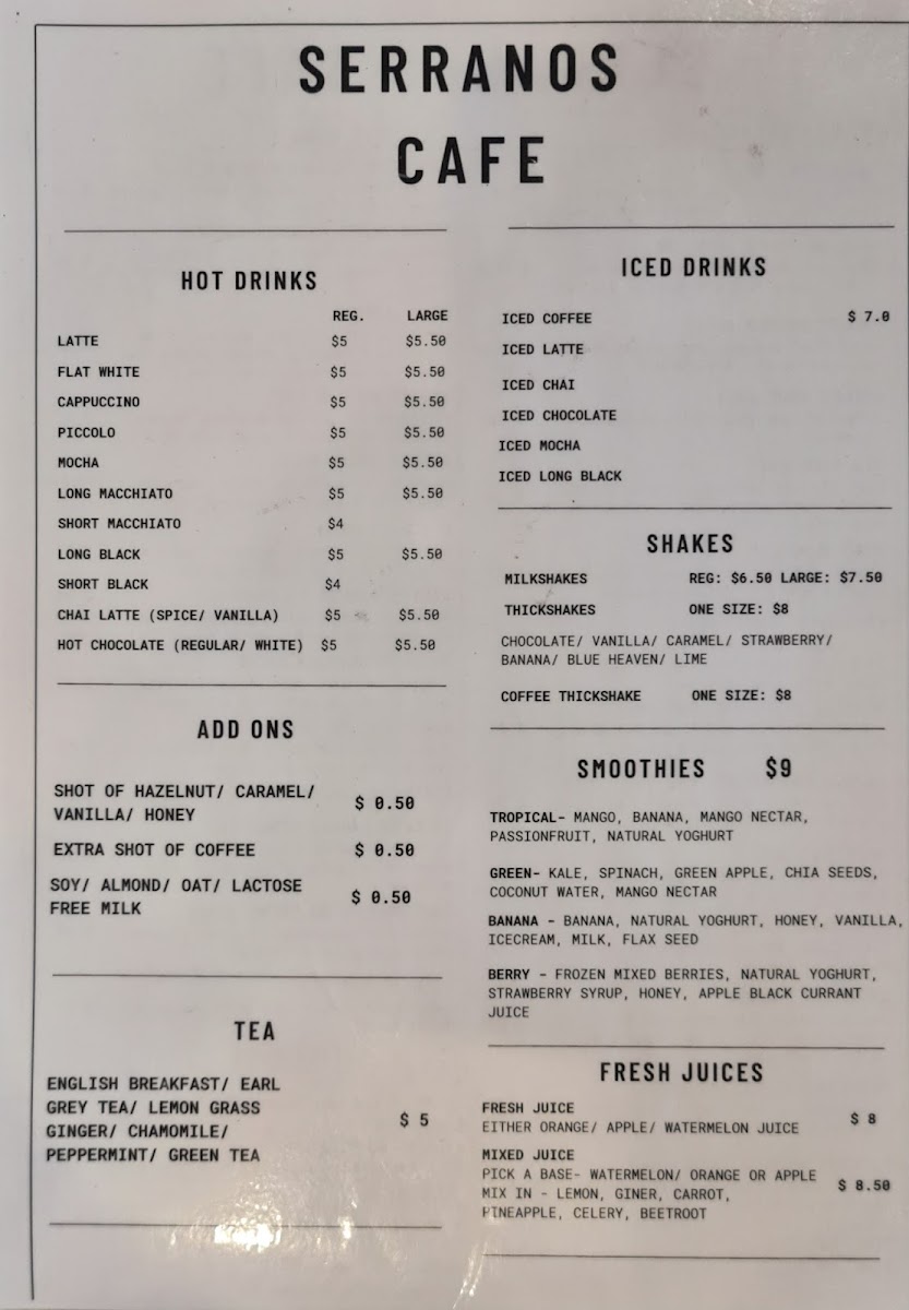 For those who love a refreshing drink, Serrano's serves a range of iced drinks such as iced coffee, iced chai, and iced mocha, alongside creamy milkshakes. The atmosphere is lively and inviting, making it a perfect spot for families and friends seeking a fulfilling meal together. Friendly and attentive staff add to the welcoming charm of the cafe.